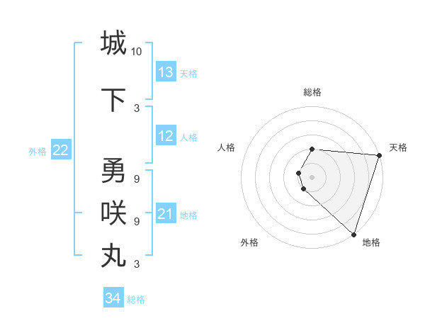 城下 勇咲丸さんの総格は34画の2点!