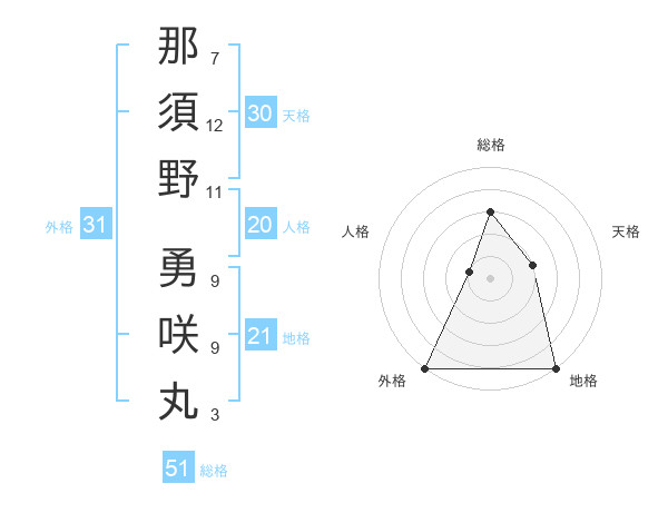 那須野 勇咲丸さんを姓名の画数から五運を鑑定