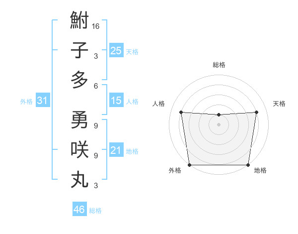 鮒子多 勇咲丸さんの外格は31画の5点!