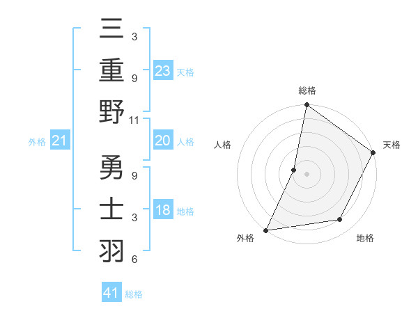 三重野 勇士羽さんを姓名の画数から五運を鑑定