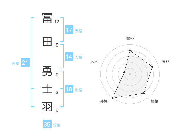 冨田 勇士羽さんを姓名の画数から五運を鑑定