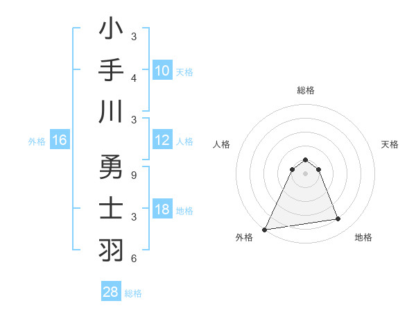 小手川 勇士羽さんの外格は16画の5点!