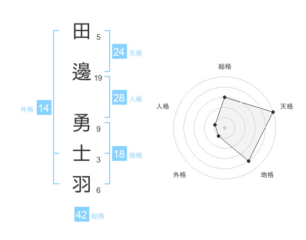 田邊 勇士羽さんを姓名の画数から五運を鑑定