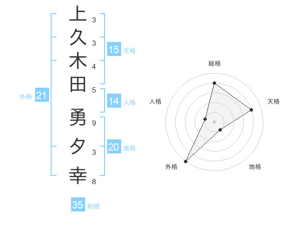 上久木田 勇夕幸さんを姓名の画数から五運を鑑定