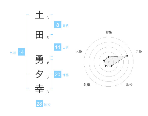 土田 勇夕幸さんの総格は28画の1点