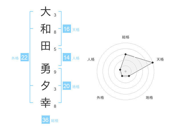 大和田 勇夕幸さんを姓名の画数から五運を鑑定