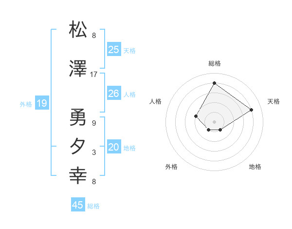松澤 勇夕幸さんを姓名の画数から五運を鑑定