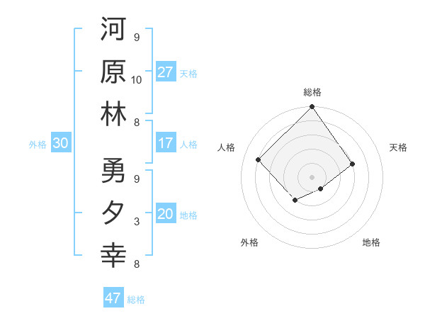 河原林 勇夕幸さんを姓名の画数から五運を鑑定