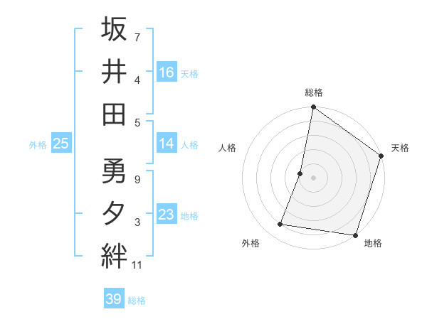 坂井田 勇夕絆さんを姓名の画数から五運を鑑定