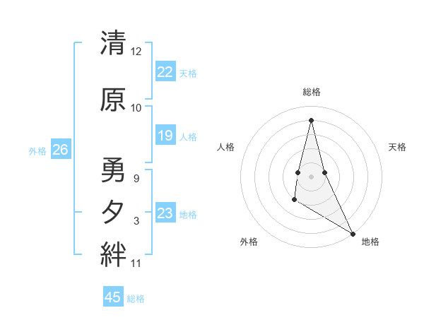 清原 勇夕絆さんの総格は45画の4点!