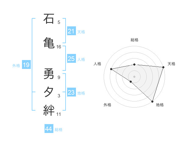 石亀 勇夕絆さんを姓名の画数から五運を鑑定