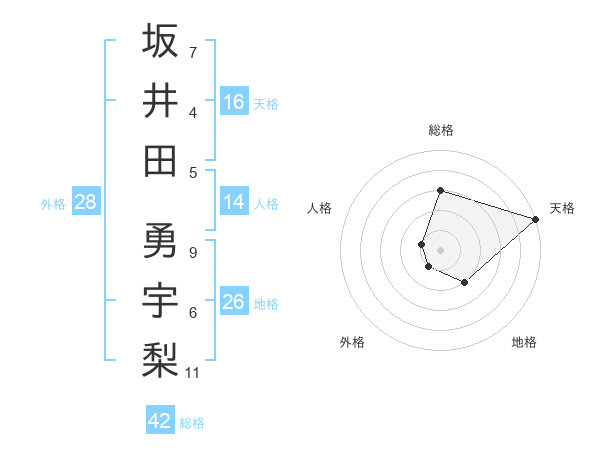 坂井田 勇宇梨さんを姓名の画数から五運を鑑定