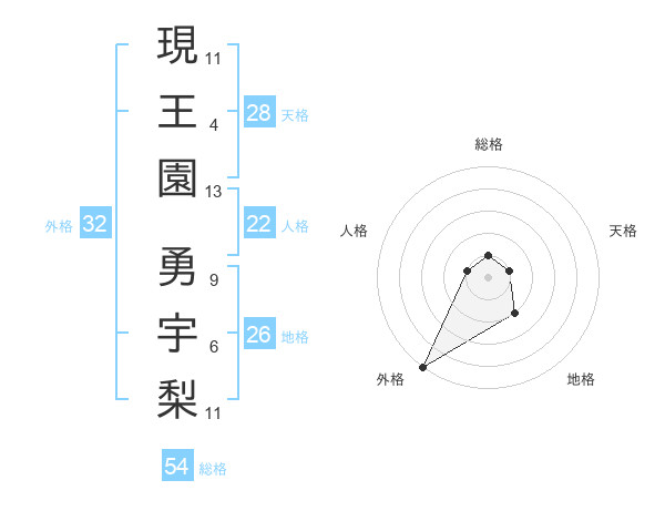 現王園 勇宇梨さんを姓名の画数から五運を鑑定