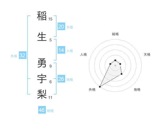 稲生 勇宇梨さんを姓名の画数から五運を鑑定