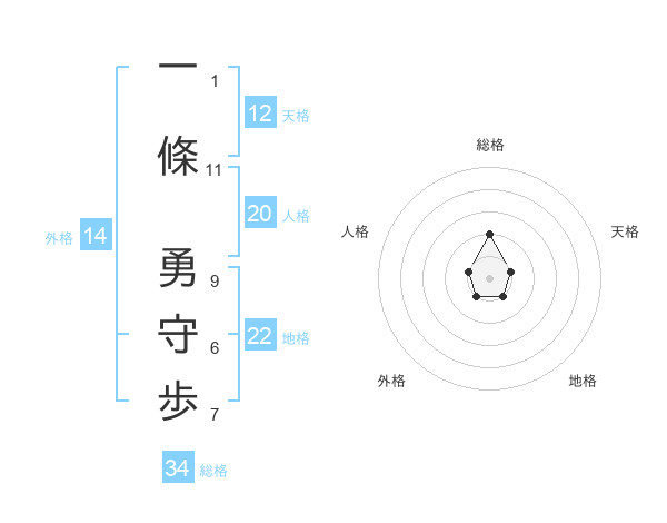 一條 勇守歩さんを姓名の画数から五運を鑑定