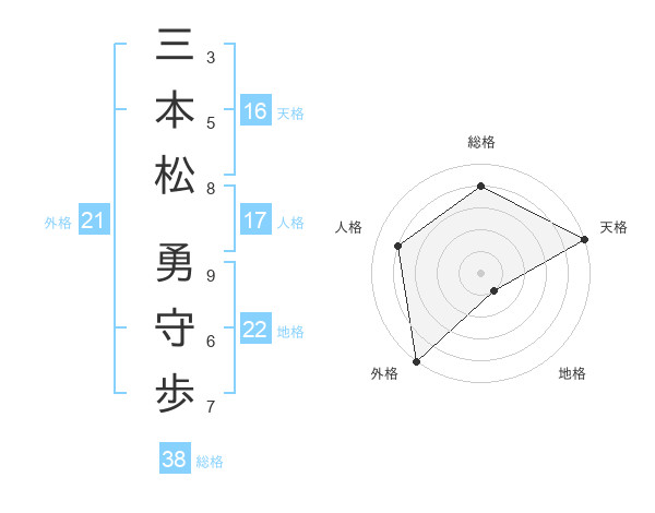 三本松 勇守歩さんを姓名の画数から五運を鑑定