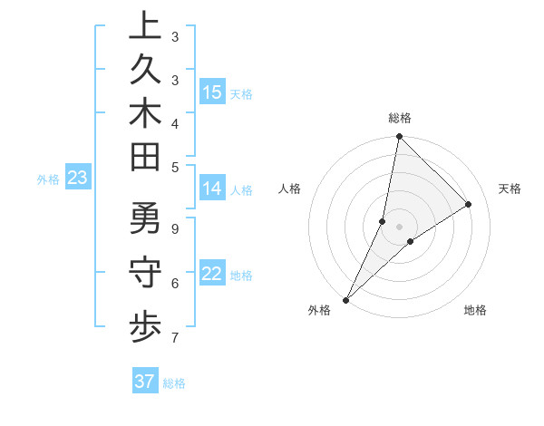上久木田 勇守歩さんを姓名の画数から五運を鑑定