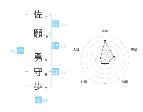 佐願 勇守歩さんを姓名の画数から五運を鑑定