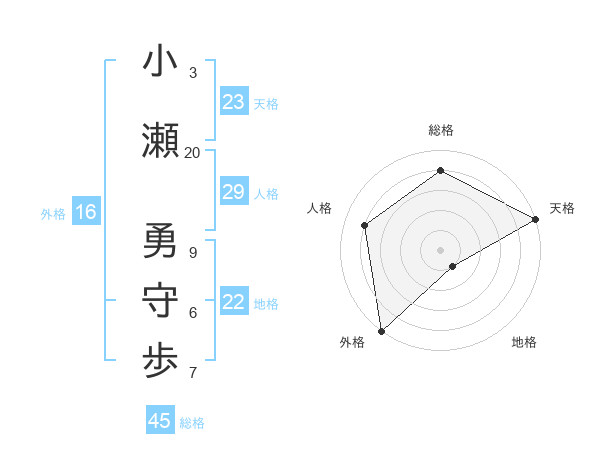 小瀬 勇守歩さんを姓名の画数から五運を鑑定