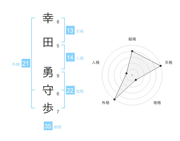 幸田 勇守歩さんの総格は35画の4点!