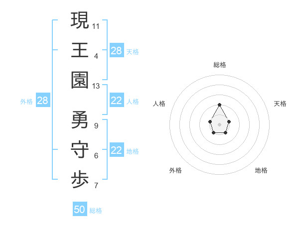 現王園 勇守歩さんを姓名の画数から五運を鑑定
