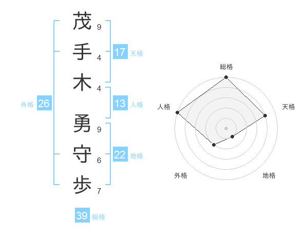 茂手木 勇守歩さんを姓名の画数から五運を鑑定