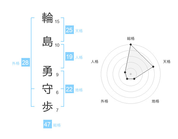 輪島 勇守歩さんの総格は47画の5点