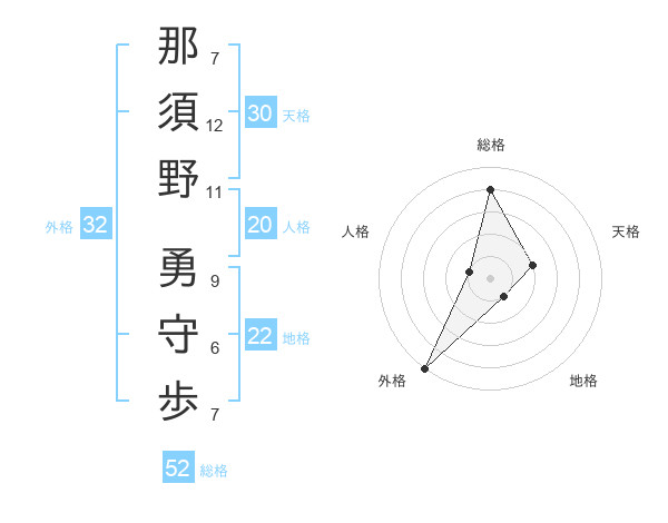 那須野 勇守歩さんを姓名の画数から五運を鑑定