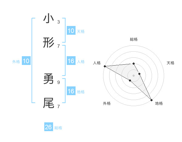 小形 勇尾さんを姓名の画数から五運を鑑定