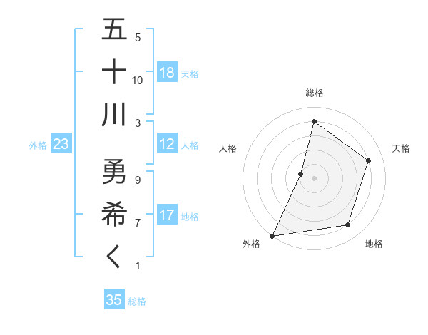 五十川 勇希くさんを姓名の画数から五運を鑑定