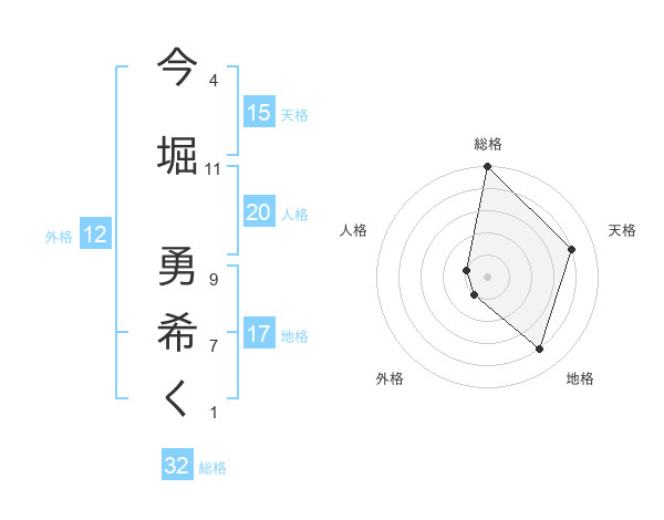今堀 勇希くさんを姓名の画数から五運を鑑定