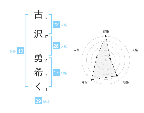 古沢 勇希くさんを姓名の画数から五運を鑑定