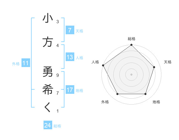 小方 勇希くさんを姓名の画数から五運を鑑定