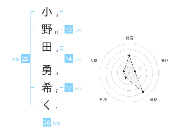 小野田 勇希くさんを姓名の画数から五運を鑑定