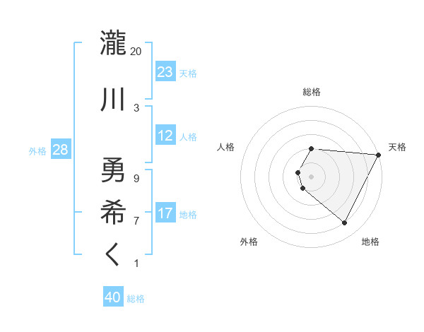 瀧川 勇希くさんを姓名の画数から五運を鑑定