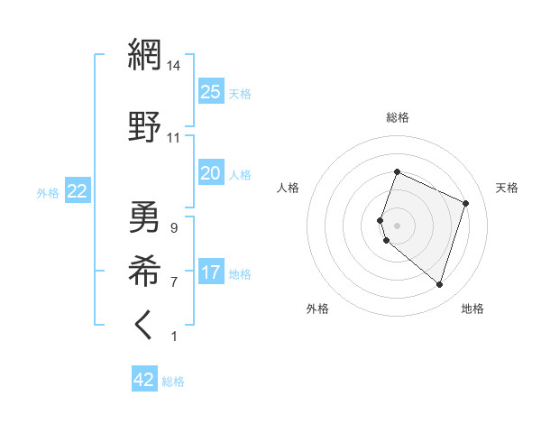 網野 勇希くさんを姓名の画数から五運を鑑定