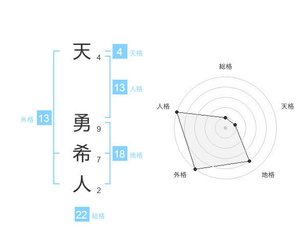 天 勇希人さんの外格は13画の5点!