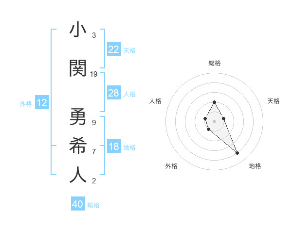 小関 勇希人さんを姓名の画数から五運を鑑定