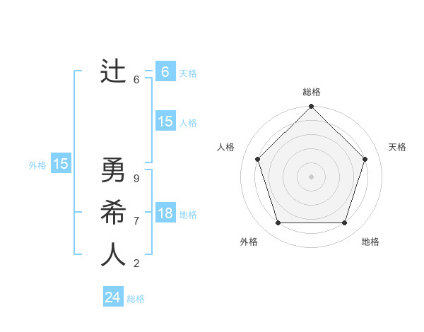 辻 勇希人さんの外格は15画の4点!