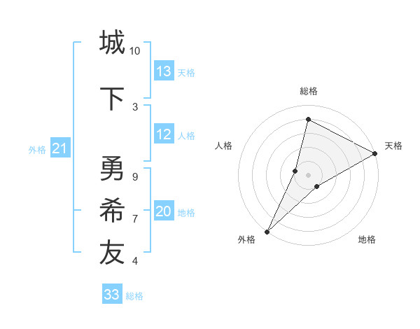 城下 勇希友さんの総格は33画の4点!