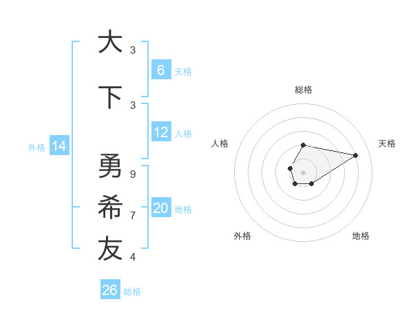 大下 勇希友さんを姓名の画数から五運を鑑定