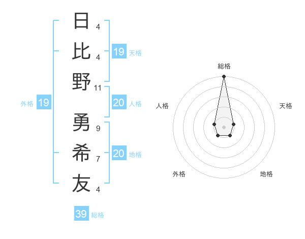 日比野 勇希友さんの総格は39画の5点!