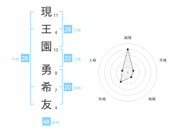 現王園 勇希友さんの総格は48画の4点!