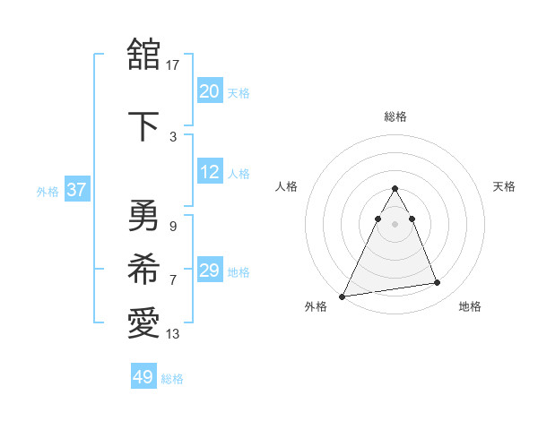 舘下 勇希愛さんを姓名の画数から五運を鑑定