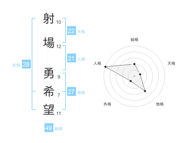 射場 勇希望さんの人格は21画の5点!