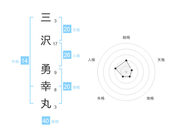 三沢 勇幸丸さんを姓名の画数から五運を鑑定