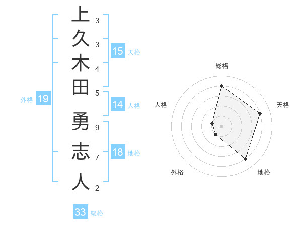 上久木田 勇志人さんを姓名の画数から五運を鑑定