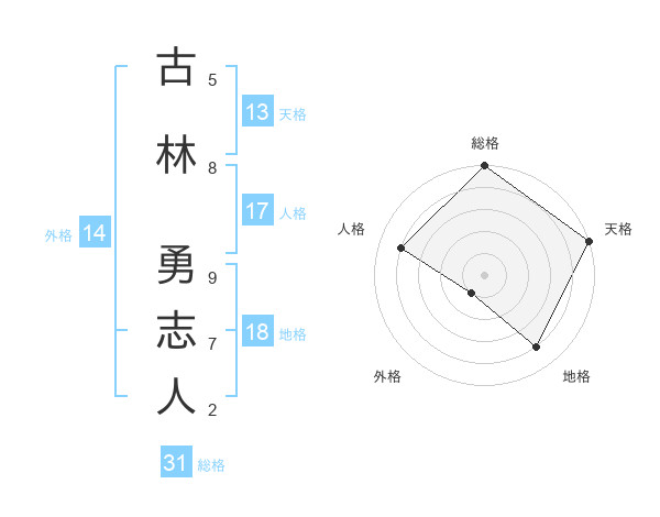 古林 勇志人さんの総格は31画の5点!