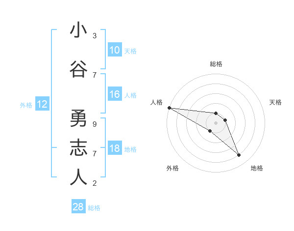 小谷 勇志人さんの総格は28画の1点!