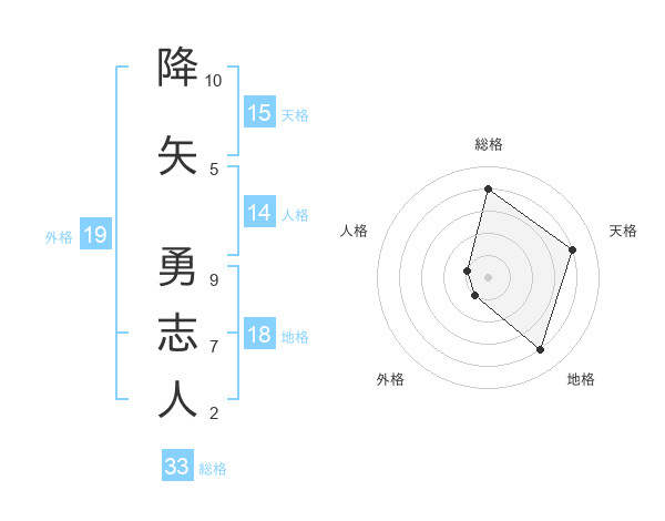 降矢 勇志人さんを姓名の画数から五運を鑑定